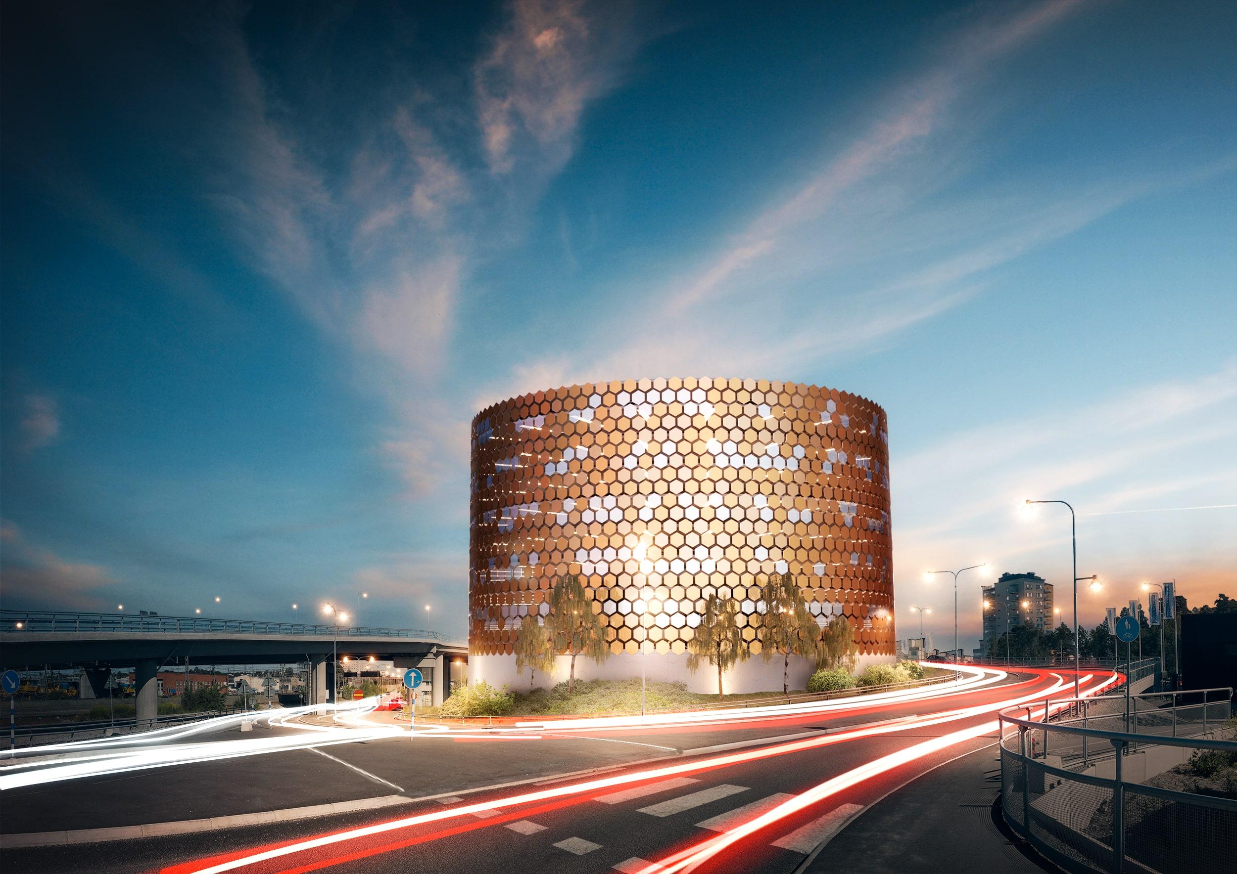 In January 2023, an impressive ten-storey parking garage was inaugurated in Arenastaden, Solna. The Signalbron parking garage, created by ProDesign, is not only a practical solution to the parking needs of the area but also an architectural masterpiece. The site for Signalbron arose when a piece of land was left over during the construction of Arenastaden. This was used wisely and enabled the creation of a circular parking facility that would serve not only the ice rinks, the new office and bath house, but also ICA's new headquarters. ProDesign took on the assignment on behalf of Strängbetong and delivered a final product that is not only functional but also visually impressive. The round parking garage with hexagonal pattern on the facade is illuminated and gives a modern touch to the area.
