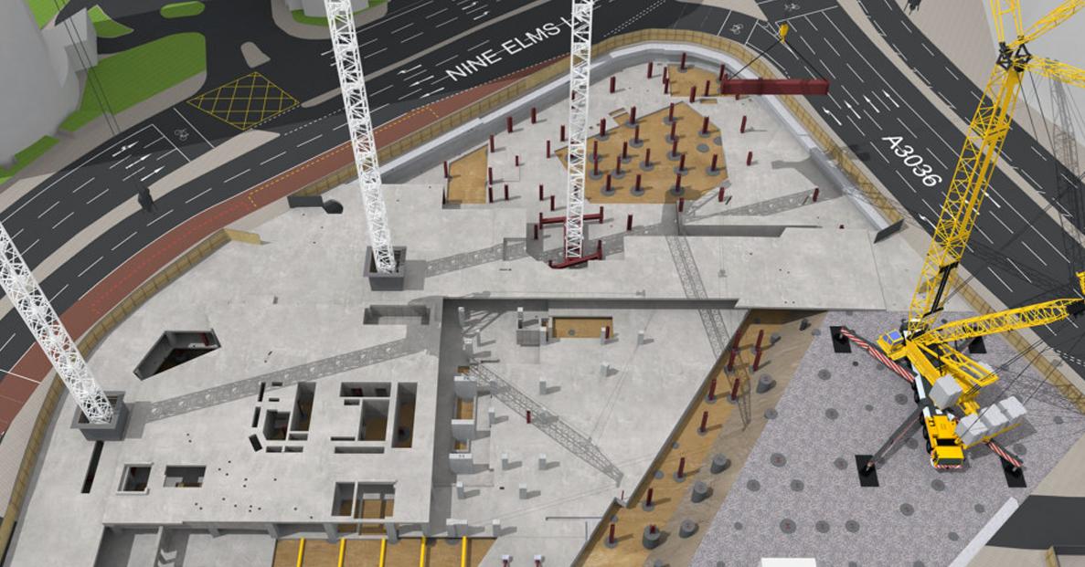 In the case of One Nine Elms, the re-bar design challenges were compounded by the fact that the core base raft for one of the buildings was constructed under very tight conditions. This meant that all equipment and materials had to be supplied through two small mole holes.