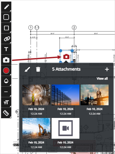 The drawings module on the mobile application now includes the ability to add photos or videos as an annotation. This feature allows for photos or videos to be captured in the field and communicated in the context of a drawing. See this functionality in action.