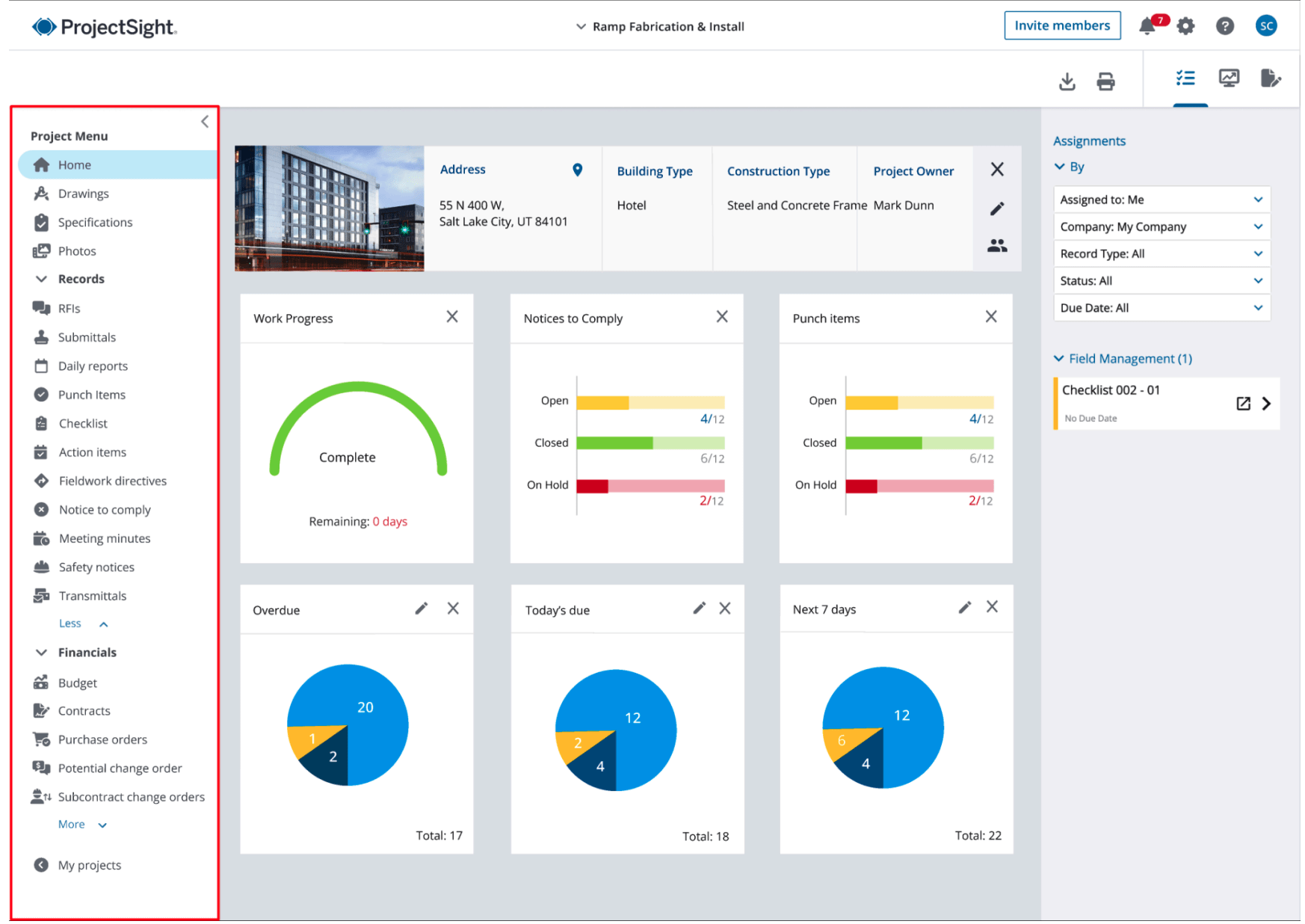 New Project Menu: The menu navigation has been redesigned so users can move through the software faster. The updated menu will include five sections: Project Menu, Records, Financials, Settings and Return to My Projects. The menu can collapse when not in use.