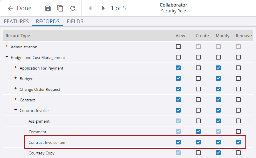 Manage contract invoice items with permissions: You can set record permissions to limit which security roles can create, modify, and delete contract invoice items.