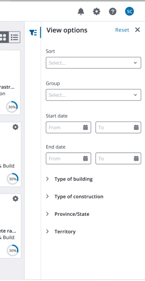 Enhanced Project Filter Panel: Find projects faster with more options to sort, group and search for projects.