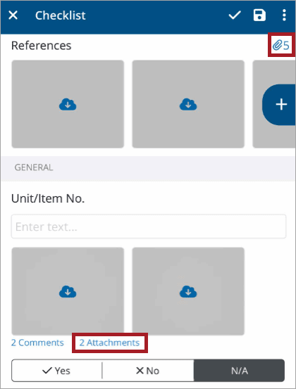 Quickly see all the attachments to records, including photos, videos, drawings or documents. Open a record, such as a checklist, on the mobile application and open attachments to view, share or delete.