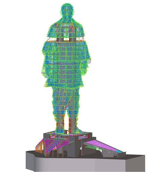 Designing the mega structure from a photograph: Unlike other projects, the design of this structure was multifaceted since the structure had to be reconstructed as a magnified replica of a real-life photograph of Sardar Vallabhbhai Patel. This made it imperative for the designers and fabricators to make connections at every node.