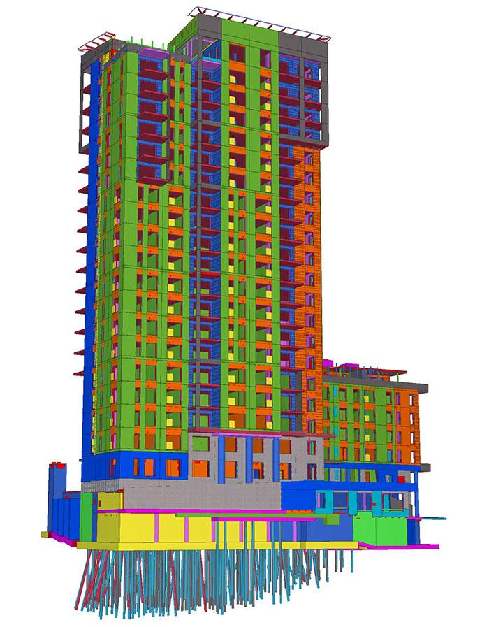 Precast and Steel detailers coordinated structures to ensure flawless connections between different materials.