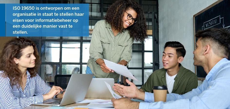 De ISO 19650 standaard wordt internationaal erkend als dé standaard voor het beheer van digitale informatie in de levenscyclus van bouwwerken (Building Information Modelling of kortweg BIM). ISO 19650 is ontworpen om een organisatie in staat te stellen haar eisen voor informatiebeheer op een duidelijke manier vast te stellen. Tijdens de volledige leverings- en operationele fase van een gebouw wordt informatie verzameld op de manier die voldoet aan de eisen van BIM. Die informatie wordt beschikbaar gesteld in een omgeving waarbinnen verschillende partijen samenwerken. De ISO19650 zorgt ervoor dat verschillende partijen op een veilige, gestandaardiseerde manier kunnen samenwerken en het veilig delen van informatie tussen verschillende partijen mogelijk is. Bij de betrokken partijen kun je denken aan: Opdrachtgevers, Aannemers, Architecten, etc.