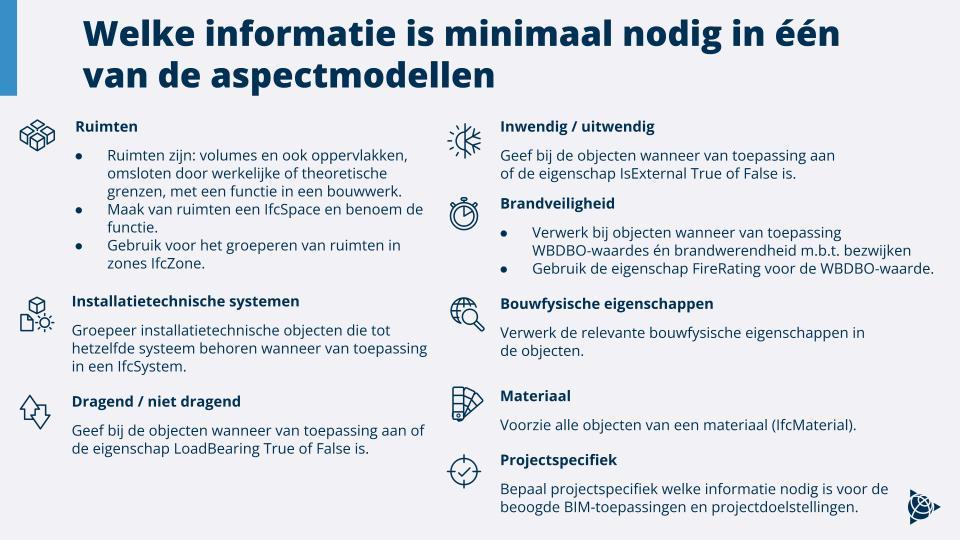 En zo moet de volgende informatie ook minimaal aanwezig zijn in één van de aspectmodellen: